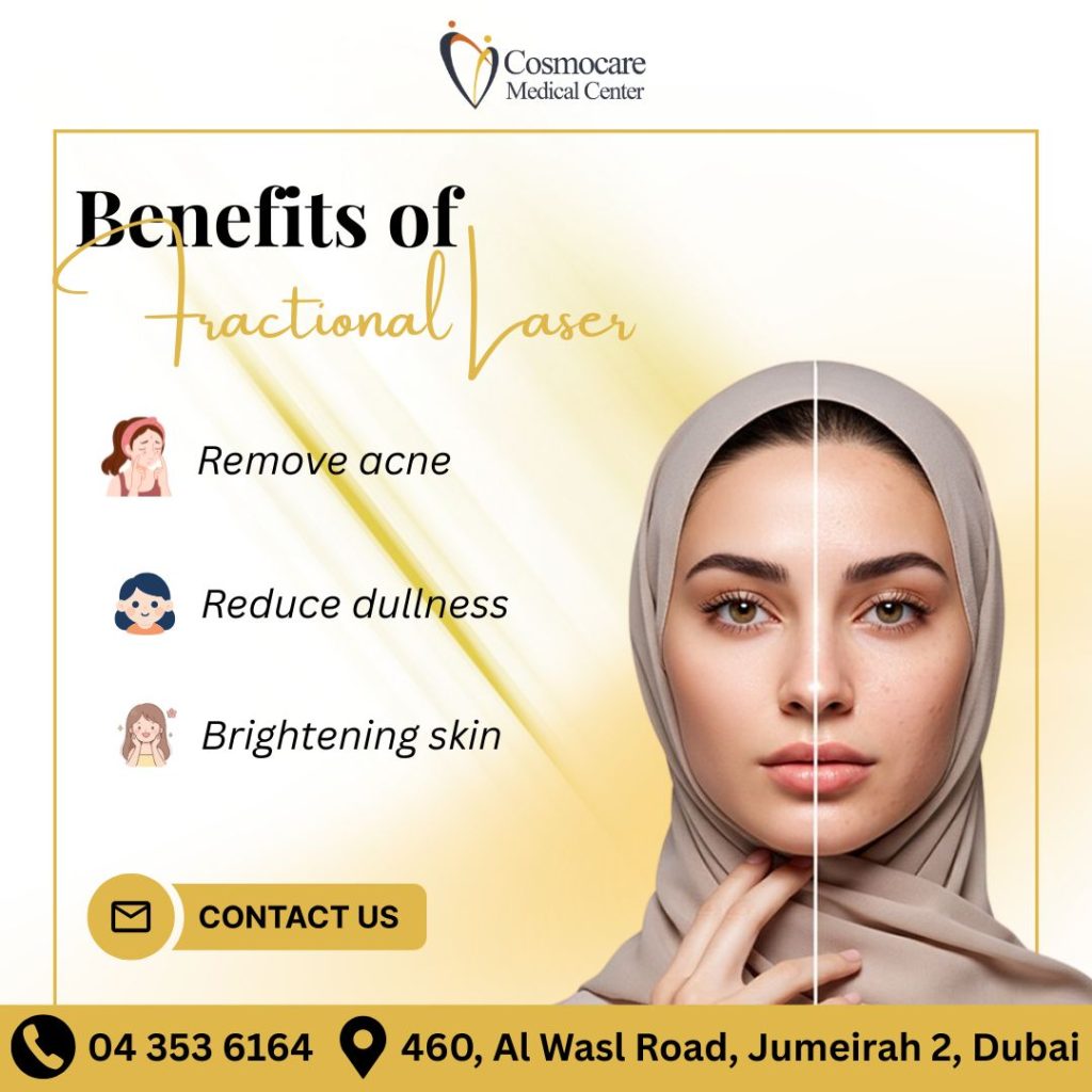 Are you tired of dealing with persistent acne scars or a dull complexion? Discover the power of Fractional Laser at Cosmocare Medical Center. This advanced treatment works deep within the skin layers to stimulate collagen, effectively removing acne marks, reducing dullness, and brightening your skin for a radiant finish.