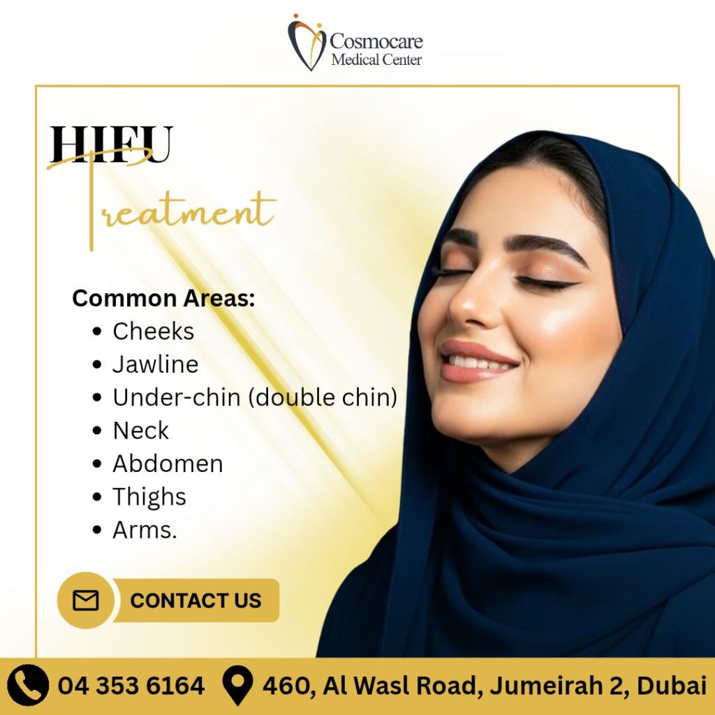 By stimulating collagen production deep within the skin, HIFU effectively targets common areas like the cheeks, jawline, neck, and double chin. Itβs also a powerful tool for body contouring on the abdomen, thighs, and arms. Enjoy visible results with no downtime and no needles. Rediscover your confidence and define your features with the latest in aesthetic technology right here in Jumeirah!