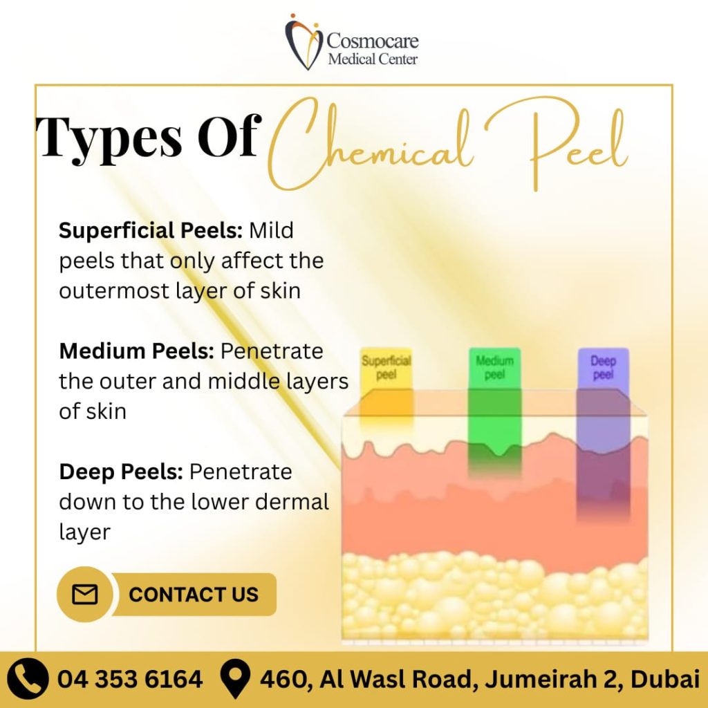 Are you looking for a fresh start for your skin? At Cosmocare Medical Center, we offer professional Chemical Peels tailored to your unique needs. Whether you need a Superficial Peel to refresh the outermost layer, a Medium Peel for deeper rejuvenation, or a Deep Peel to target the lower dermal layers, we have the perfect solution.