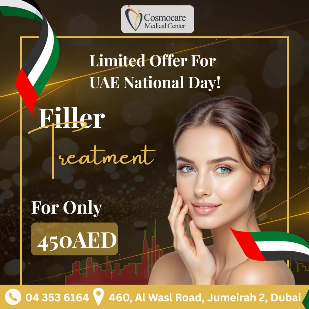 Celebrate the festive spirit of UAE National Day with a stunning deal on Dermal Filler Treatment at Cosmocare Medical Center!