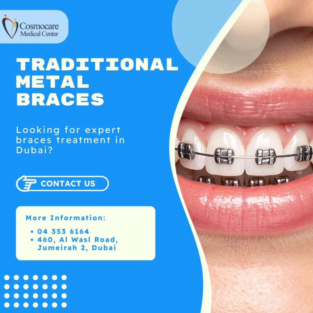 Are you ready to transform your smile with a time-tested solution? At Cosmocare Medical Center, we provide expert orthodontic care right in the heart of Dubai. Traditional metal braces remain one of the most reliable and effective ways to align your teeth, fix overcrowding, and perfect your bite.