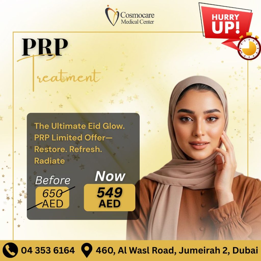 Ready to restore your skin’s natural radiance? At Cosmocare Medical Center, we are helping you shine this festive season with our exclusive PRP Treatment offer! Experience a refreshed and youthful look through Platelet-Rich Plasma therapy, designed to rejuvenate your skin from within.