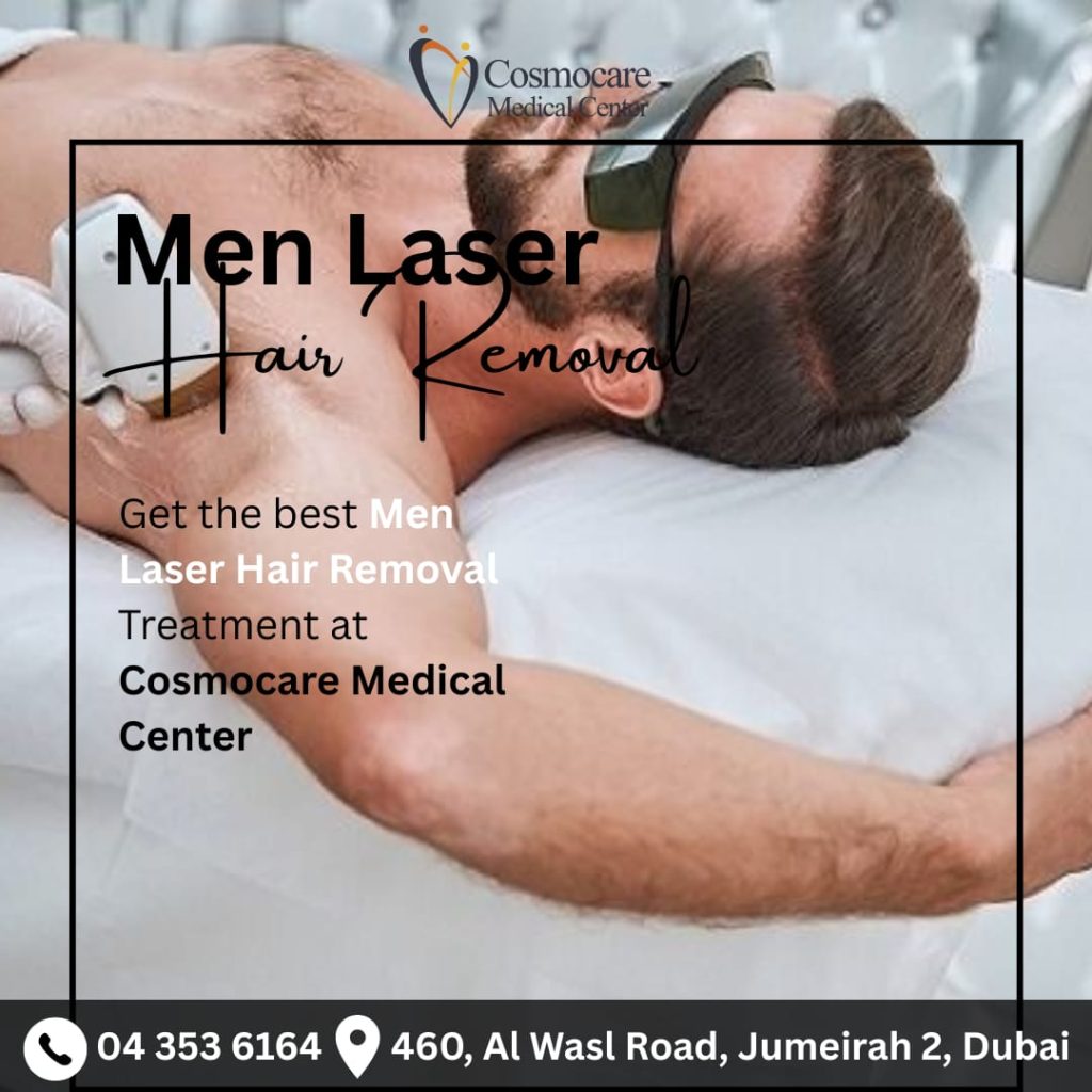Tired of constant shaving, ingrown hairs, and messy waxing? It’s time to choose a better solution! Laser hair removal for men is an effective, long-lasting treatment for unwanted hair on the back, chest, shoulders, and more. At Cosmocare Medical Center, we offer the best, most comfortable treatments, tailored to your skin and hair type. Achieve that smooth, clean look you’ve always wanted and reclaim your time. Say hello to permanent hair reduction and boost your confidence! Book your consultation today.