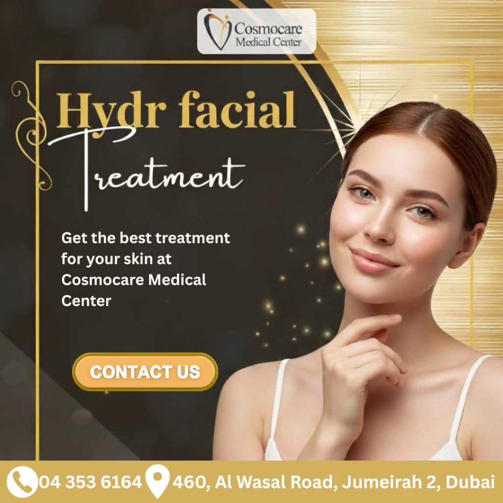 Treat your skin to the best with a Hydrafacial Treatment at Cosmocare Medical Center! This multi-step treatment is designed to get the best treatment for your skin by deeply cleansing, exfoliating, and hydrating. A Hydrafacial refreshes your complexion, reduces fine lines, and leaves your skin feeling incredibly soft and radiant. Say goodbye to dullness and hello to a flawless, dewy glow! Book your appointment today and experience the ultimate skin transformation right here in Dubai.