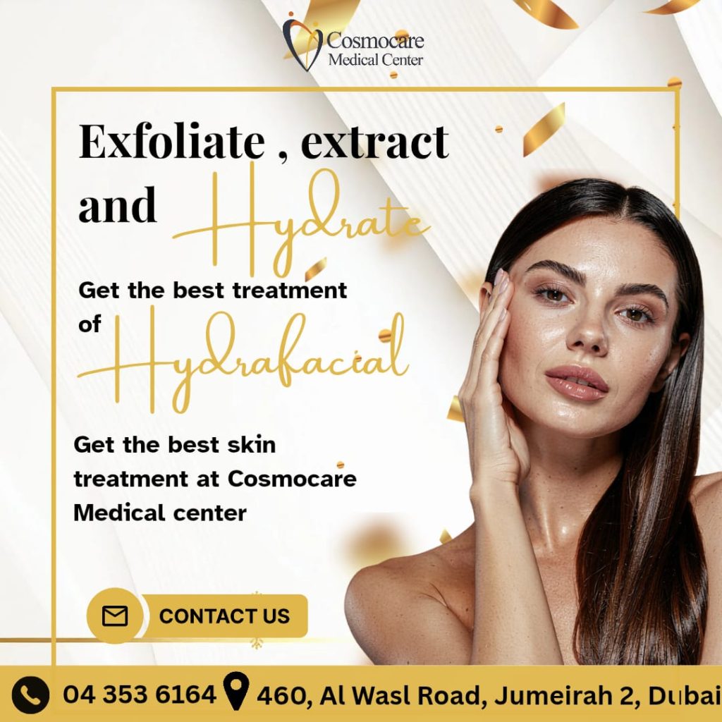 Looking for the secret to flawless, radiant skin? At Cosmocare Medical Center, we offer the best Hydrafacial treatment in Dubai to transform your complexion. Our professional three-step process works to exfoliate, extract, and hydrate, leaving your skin deeply cleansed and intensely nourished.