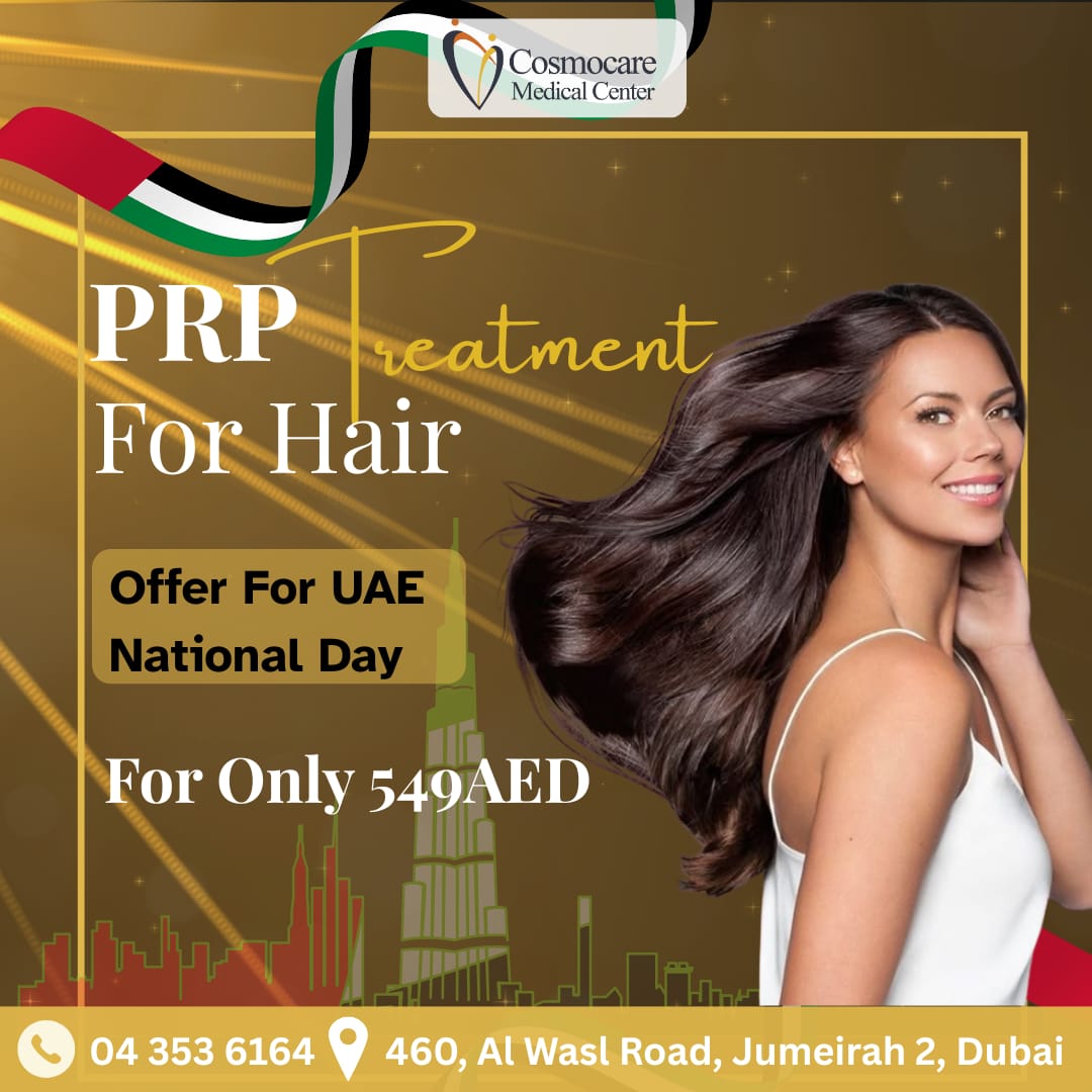 UAE National Day Exclusive: PRP Hair Treatment Offer! Celebrate the spirit of the UAE with an exclusive offer on PRP (Platelet-Rich Plasma) Hair Treatment at Cosmocare Medical Center! Looking for a natural and effective way to combat hair loss and stimulate growth? Our PRP treatment is available for only...