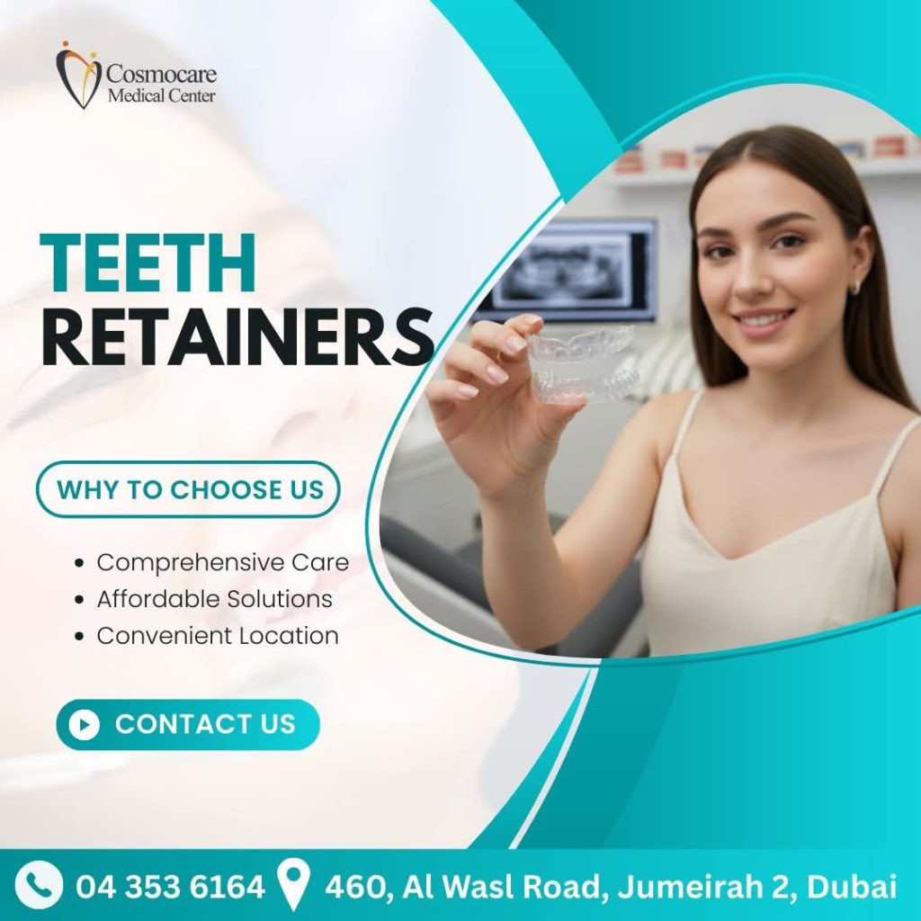 Finished your orthodontic journey? Don’t let those beautiful results shift! At Cosmocare Medical Center, we provide high-quality, custom-fit Teeth Retainers designed for maximum comfort and durability. Whether you’ve just come out of braces or need a replacement, our expert team in Jumeirah ensures your smile stays exactly where it belongs.
