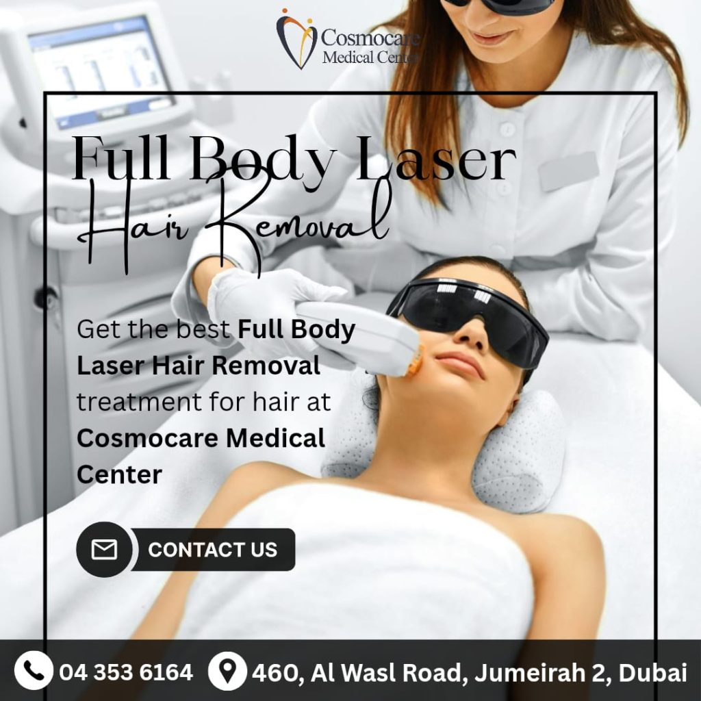 Stop wasting time on daily shaving and painful waxing! At Cosmocare Medical Center, we make achieving permanently smooth skin simple with the best Full Body Laser Hair Removal in Dubai. Our advanced technology and experienced specialists guarantee a safe, comfortable, and highly effective treatment with lasting results. Imagine the freedom and confidence of always being ready! Located conveniently in Jumeirah 2, we are dedicated to helping you look and feel your absolute best. Ready for a life-changing beauty investment? Click the contact info below to book your consultation now! Your journey to flawless, hair-free skin starts today.