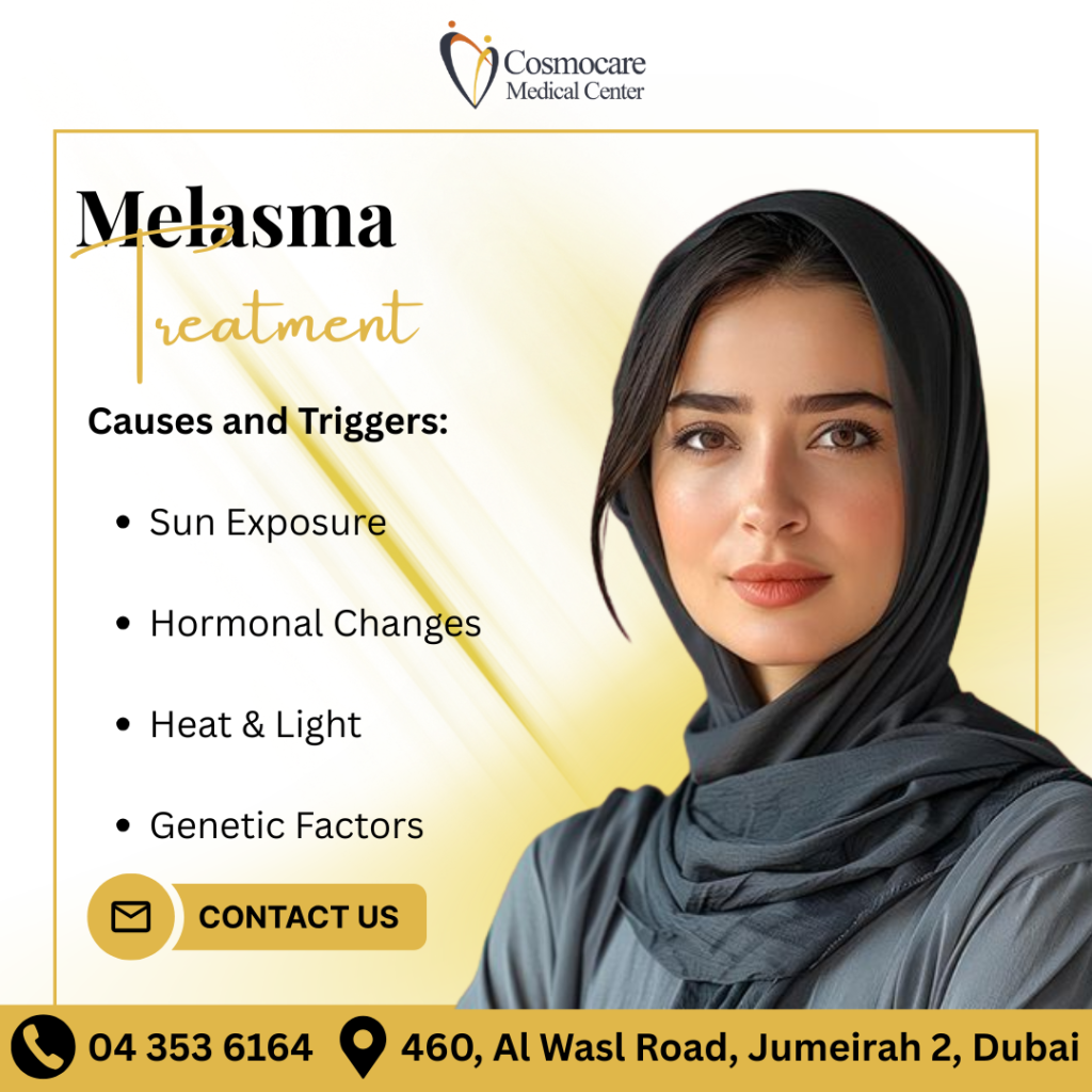 Is uneven skin tone holding you back? Melasma can be triggered by many factors, including sun exposure, hormonal changes, and even heat. At Cosmocare Medical Center, we understand how these dark patches can affect your confidence.