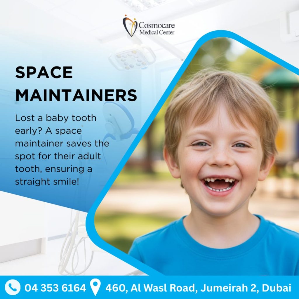 At Cosmocare Medical Center, our Space Maintainers act as silent guardians, holding the gap open and perfectly reserving the spot for the permanent tooth. This simple, effective solution is key to preventing future orthodontic problems and ensures your child maintains that beautiful, straight smile they deserve! Invest in their lifelong oral health today!