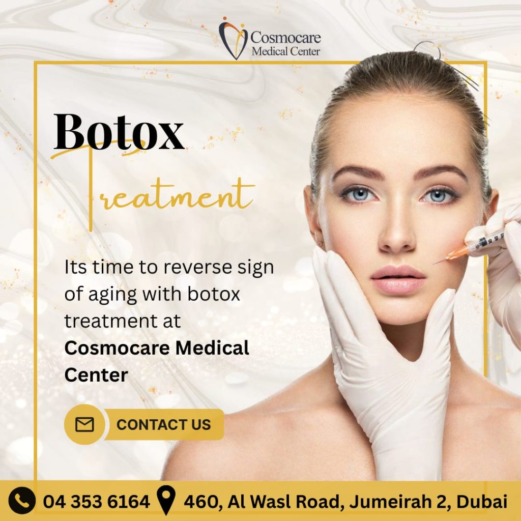 Ready to embrace a more youthful, refreshed version of yourself? It is time to reverse signs of aging with a professional Botox treatment at Cosmocare Medical Center. Our expert clinicians specialize in smooth, natural-looking results that soften fine lines and wrinkles while maintaining your unique expressions. Located in the heart of Jumeirah, we provide a safe, comfortable environment for all your aesthetic needs. Don’t let time define your look—take control and restore your skin’s smooth, vibrant glow. Book your consultation today and rediscover your confidence!