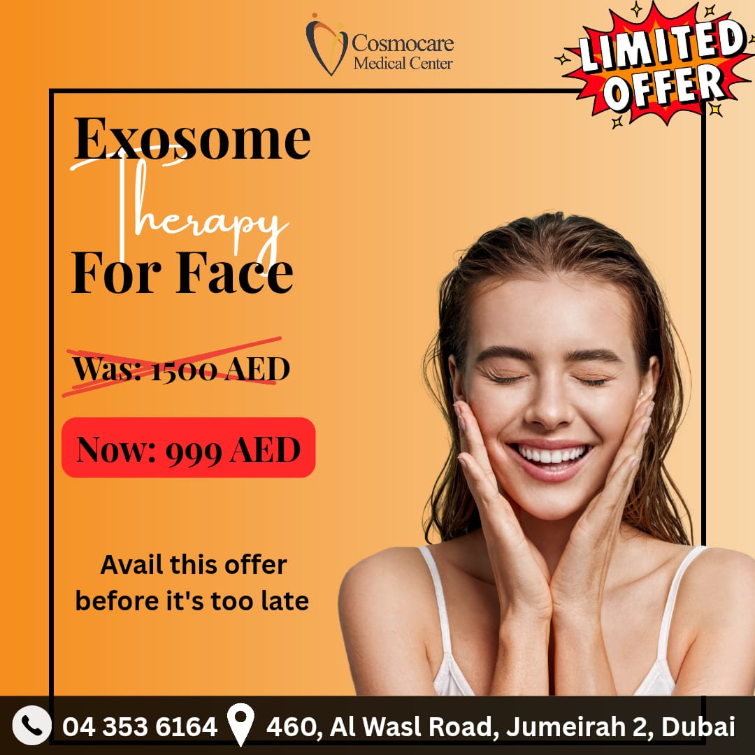 LIMITED OFFER! Transform Your Skin with Exosome Therapy! Ready to unlock your skin’s true potential? Experience the regenerative power of Exosome Therapy For Face at an unbeatable price! Was: 1500 AED Now: 999 AED Exosome therapy is the latest breakthrough in skin rejuvenation, helping to improve texture, reduce wrinkles,...