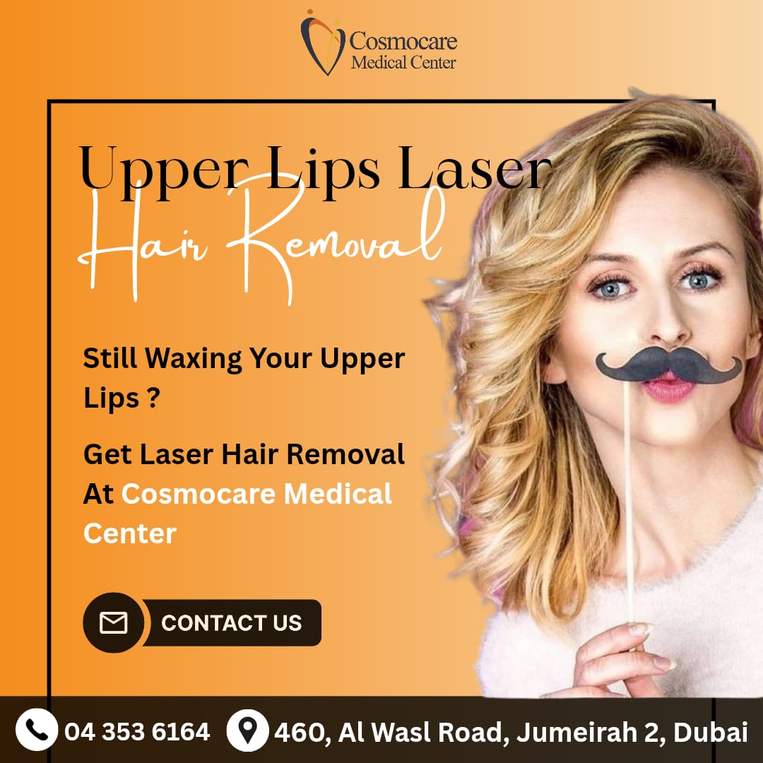 Ditch the Wax: Smooth Upper Lips Await! Tired of constant waxing, threading, or plucking? Say goodbye to the temporary fixes and hello to long-lasting smoothness! At Cosmocare Medical Center, our Upper Lips Laser Hair Removal treatment is fast, precise, and comfortable, giving you the confidence of consistently silky skin...
