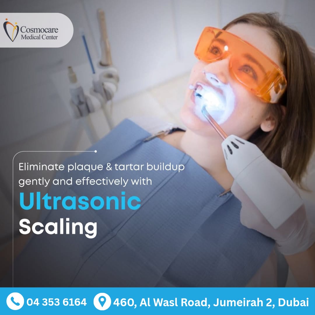 Say goodbye to stubborn plaque and tartar! Our Ultrasonic Scaling treatment at Cosmocare Medical Center offers a gentle yet highly effective way to keep your smile bright and healthy. This advanced technique uses high-frequency vibrations to comfortably remove buildup, preventing gum disease and leaving your teeth feeling incredibly smooth...