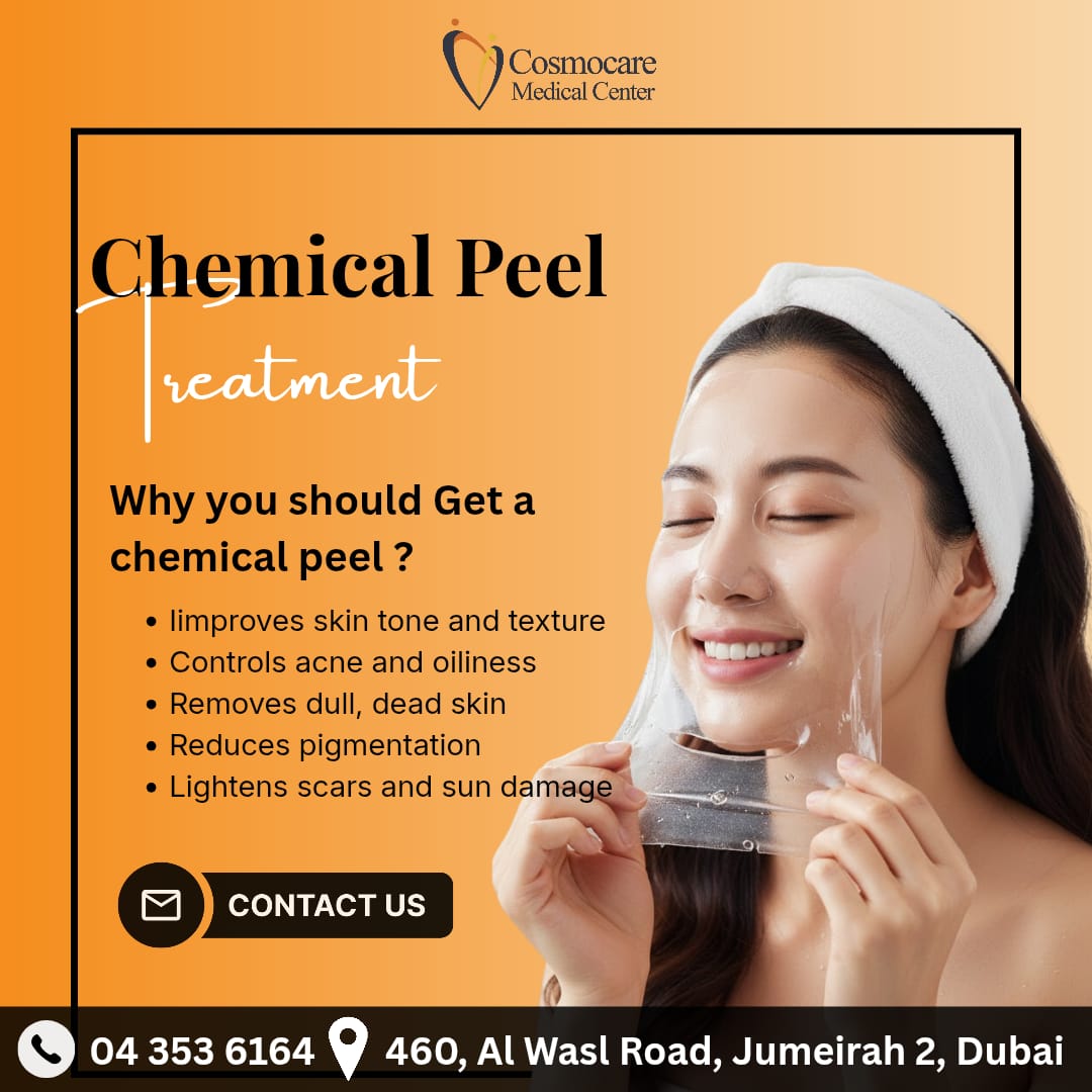 Reveal Your Radiance with a Chemical Peel Treatment! Ready for a skin refresh? A Chemical Peel at Cosmocare Medical Center is the answer! This powerful treatment works wonders: Improves skin tone and texture contrĂ´le Controls acne and oiliness Removes dull, dead skin Reduces pigmentation Lightens scars and sun damage...