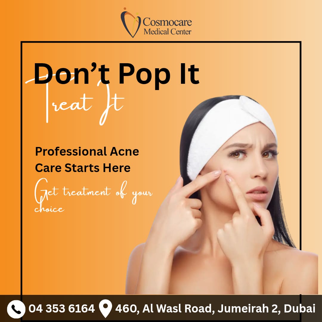 Stop the urge to squeeze! Popping pimples can lead to permanent scars and worsen inflammation. Professional Acne Care Starts Here at Cosmocare Medical Center! We offer a range of advanced, customized acne treatments to clear your skin safely and effectively, targeting the root cause of breakouts. Whether it’s persistent...